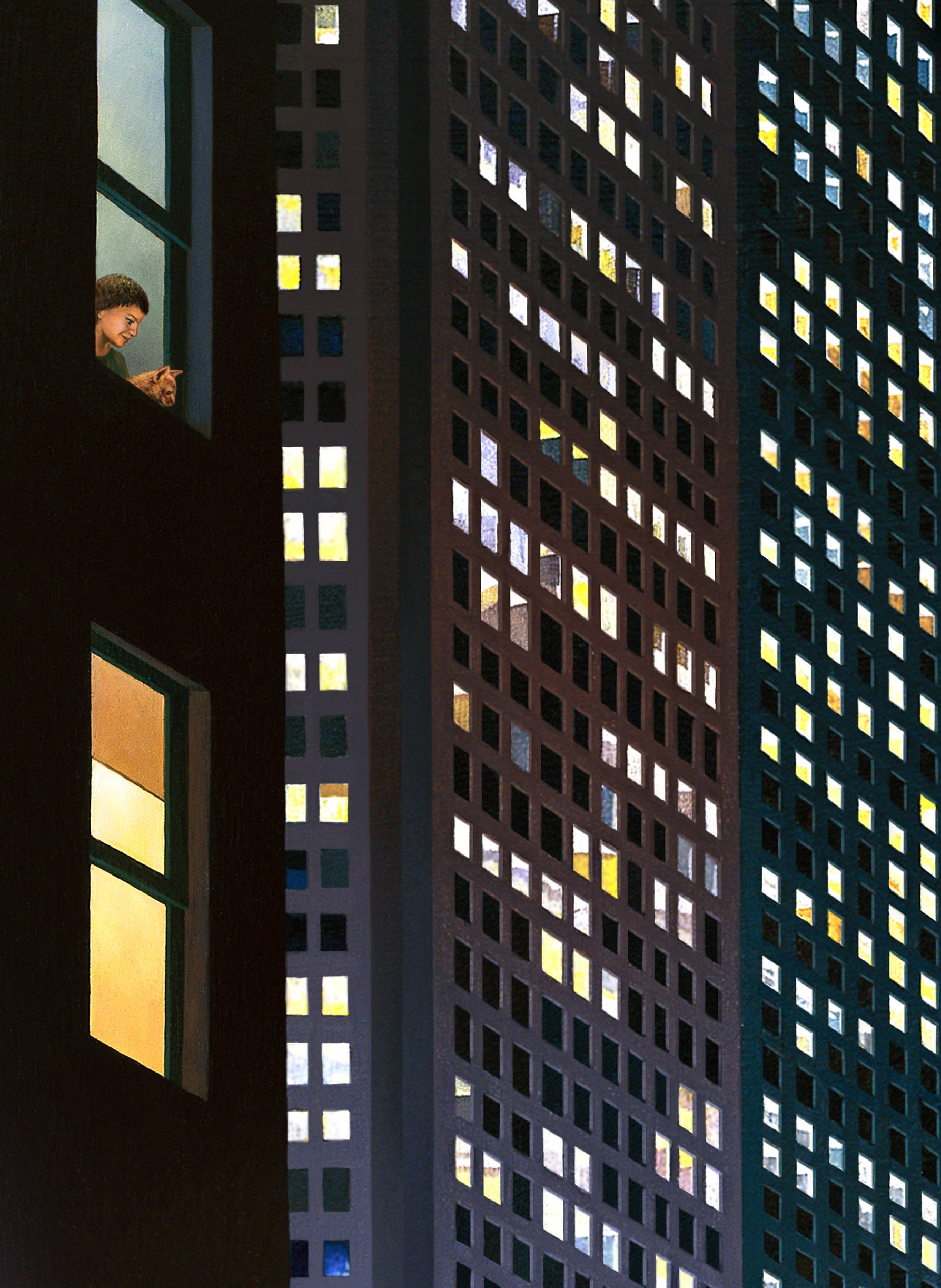 The original oil painting ""Third Avenue and 33rd Composition" was created on a prepared masonite panel, 12"x 18"; a very sharp and focused detailed painting of a view from my 32nd Street Studio. I wanted to paint a variation of the backdrop of another larger painting I did entitled "Schoolyard on 32nd Street-Dreaming". I felt a cropping of that painting's background would work as a composition on it's own.