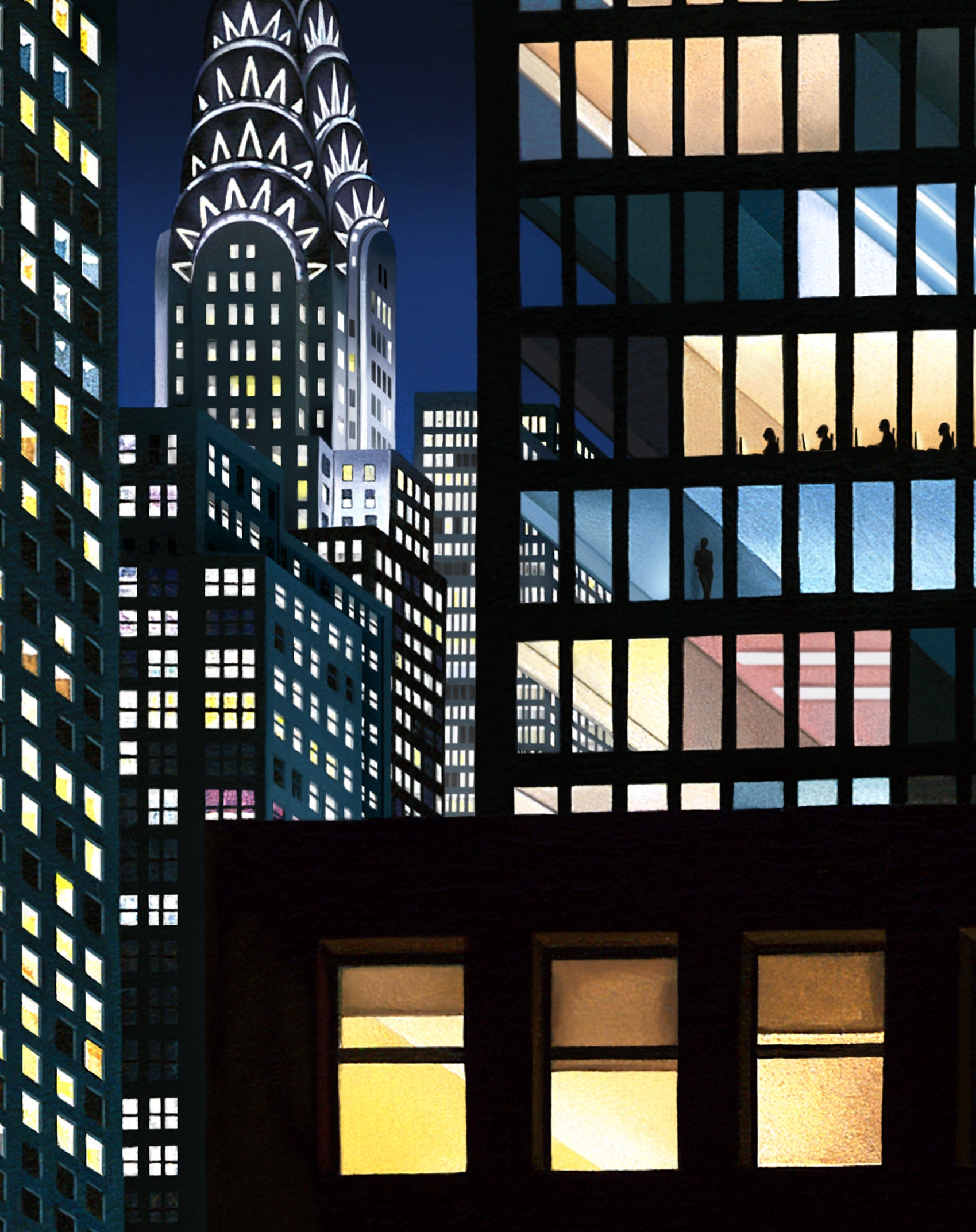 Manhattan at Night, Signed, limited edition Archival Ink Print, Giclée, Cityscape of Third Avenue NYC Oil Painting
